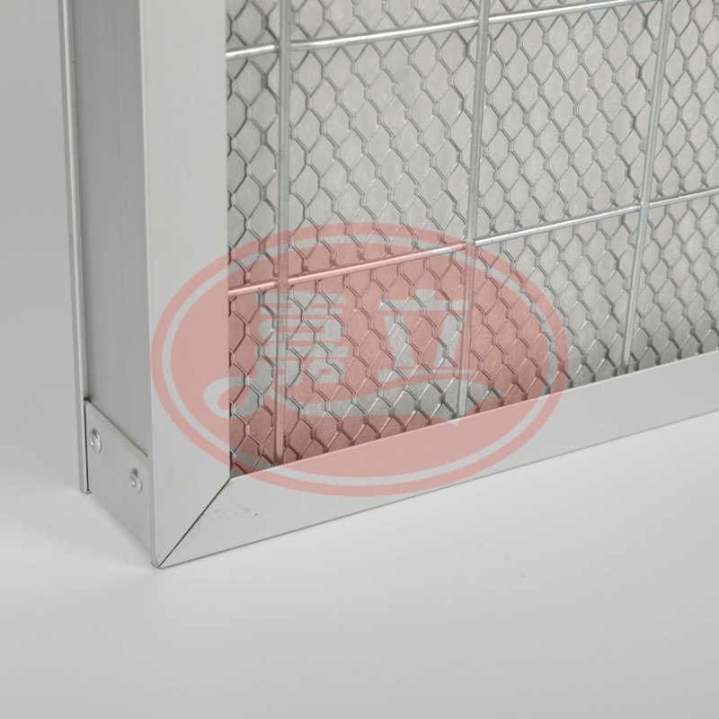 3)滤材外可以选择使用铝扩张网包覆滤材,可以有效支撑滤网承受大风量不易变形。